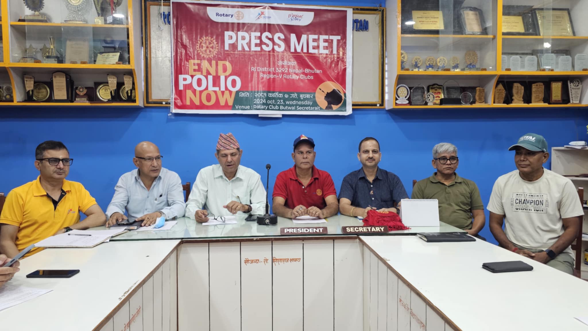 रोटरी क्लब अफ बुटवलको सचिवालयमा बुधबार पत्रकार सम्मेलन गरि डिष्ट्रिक पोलियो प्लस कमिटि चेयर ध्रुव धितालले पोलियो अभियानमा रोटरीको योगदानबारे प्रकाश पारे । नेपालको रिजन १,२ र ३ मा साईकल रयाली, रिजन ४ मा सडक नाटक तथा पाचमा कार रयाली, प्लेकार्ड र ब्यानर लगायतका सचेतनामुलक कार्यक्रम गर्न लागेको उनले बताए ।