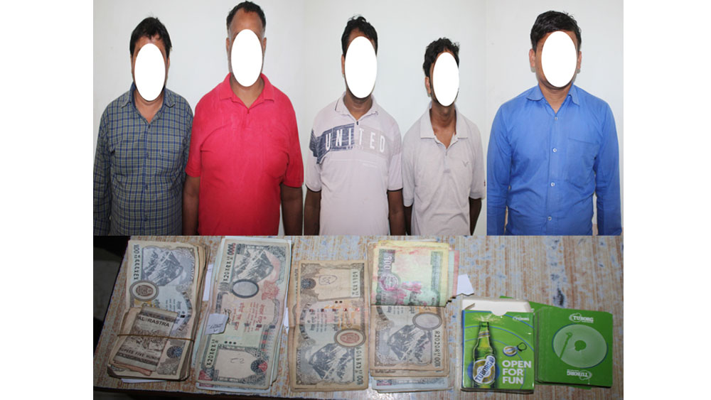 पक्राउ पर्नेहरुमा भारत महाराजगन्ज घर भई हाल जिल्ला रुपन्देही मायादेवी गाउँपालिका वडा नं. ८ बस्ने मनोहर प्रसाद र अजय जयसवाल, भारत मतिहारी घर भई हाल जिल्ला सल्यान श्रीनगर बस्ने जग्गु कुमार, रुपन्देही ओमसतिया गाउँपालिका वडा नं. ४ बस्ने रुपेश गुप्ता र सिद्धार्थनगर नगरपालिका वडा नं १ मनोज जयसवाल रहेका छन् । उनीहरुबाट तासको गड्डी र ८९ हजार ९० रुपैयाँ बरामद भएको प्रहरीले जनाएको छ ।
