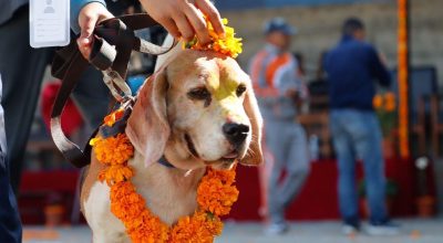 काठमाडौं । नेपालीको दोस्रो ठूलो चाड तिहारको तेस्रो दिन आज घर घरमा सुरक्षा गर्ने कुकुरलाई पूजा आराधनासहित मीठा—मीठा खानेकुरा खान दिएर सम्मान गरी मनाइँदैछ ।