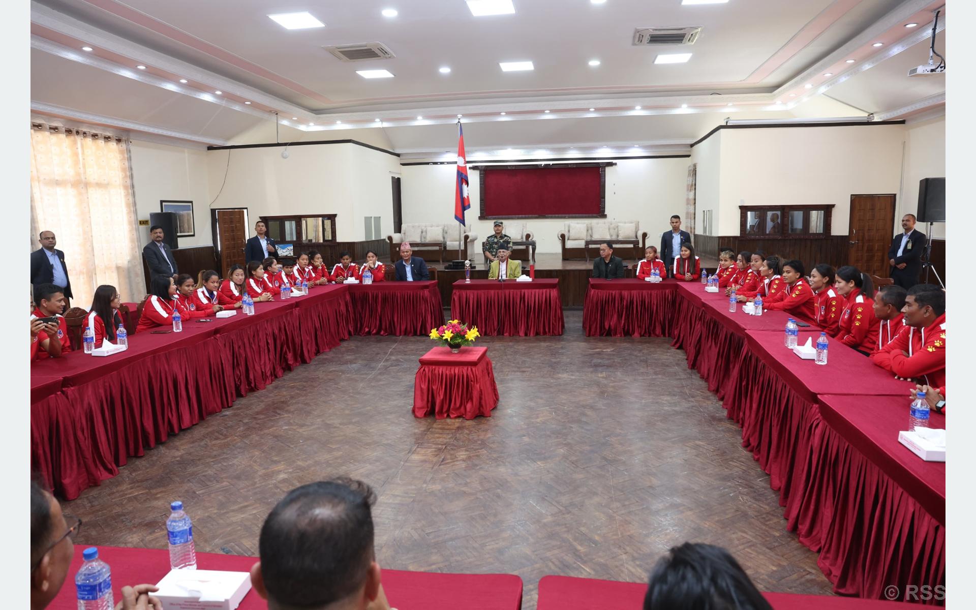 प्रधानमन्त्री निवास, बालुवाटारमा आज राष्ट्रिय टोलीका महिला फुटबल खेलाडीसँगको भेटघाटका क्रममा उनले खेल क्षेत्रको विकास र खेलाडीलाई प्रोत्साहनमा कुनै कञ्जुस्याई नगर्ने स्पष्ट गर्दै तिहारलगत्तै पुरस्कार प्रदान गर्ने जानकारी गराएका हुन् । उक्त खेलमा दोस्रो भएको नेपाली टोलीका खेलाडीले जनही रु तीन लाखका दरले पुरस्कार पाउनेछन् ।