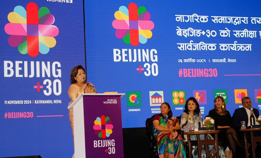 सो कार्यक्रमलाई सम्बोधन गर्दै उनले भनिन, “मलाई लाग्छ नेपालका महिलाहरुले अहिले प्राप्त गरेका संवैधानिक लगायतका अधिकारहरुको बिजारोपण ३० बर्षअघिको बेइजिङ सम्मेलनमा भएको हो । सो चौथो विश्व महिला सम्मेलनले लैंगिक समानता, महिला सशक्तिकरण, महिला विरुद्धका हिंसाको उन्मूलनलगायतका १२ ओटा क्षेत्रका प्रतिबद्धता अघि सारेको थियो ।”