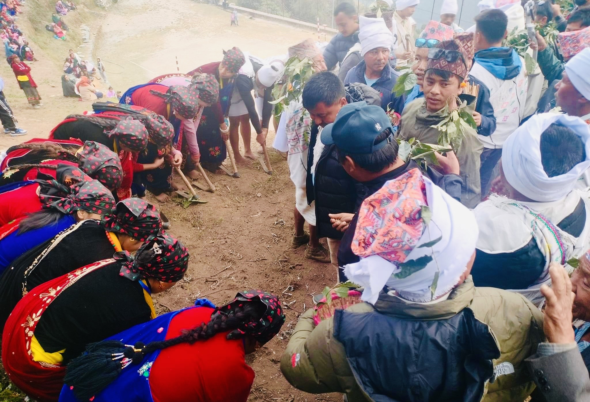 “पर्वको मुख्य दिनमा शङ्खु ९मुल० घरलाई फेरो मार्दै गाउँलेहरुले गीत-गाथा हाल्ने गर्छन् । हातमा राँको, जाँडको ठेकी र लेकाली कटुसको स्याउला नचाउँदै नजिकैको शङ्खुबारी पुग्छन् । शङ्खुबारीको बीचमा रहेको ठूलो ढुङ्गालाई सहकालका देउता मानेर पूज्छन् । गुरुबा र गाउँका अगुवाले ढुङ्गाछेउँ लिङ्गो ठड्याउँछन्, धुपबत्ती गर्छन् र जाँड चढाउँछन् । प्रकृतिका देउता ‘शङ्खु’ को प्रतिकस्वरुप मुल घर र बारीलाई शङ्खु भनेर चिनिन्छ । यो विधिपछि अविवाहित युवा हातमा कोदालो लिएर शङ्खुबारीमा दौडन्छन्, युवतीलाई डाक्छन् । युवती पनि कोदालोसहित शङ्खुबारी आउँछन् । पाका र विवाहितले अघिअघि बीउ छर्छन्, अविवाहित युवायुवती मिलेर शङ्खुबारीमा मेलो खन्न सुरु गर्छन् । जसलाई परम्परागत रुपमा ‘छापे खन्ने’ भनिन्छ । मेलो सकिएपछि युवायुवती एकापसमा कोदालो जुधाउँछन् र तानातान गर्छन् । अन्तिममा सँगै कोदालो उठाउँदै खुसी साट्छन्, खेती लगाएको सन्देश दिन्छन्”, वडाध्यक्ष घर्तीमगरले भने ।