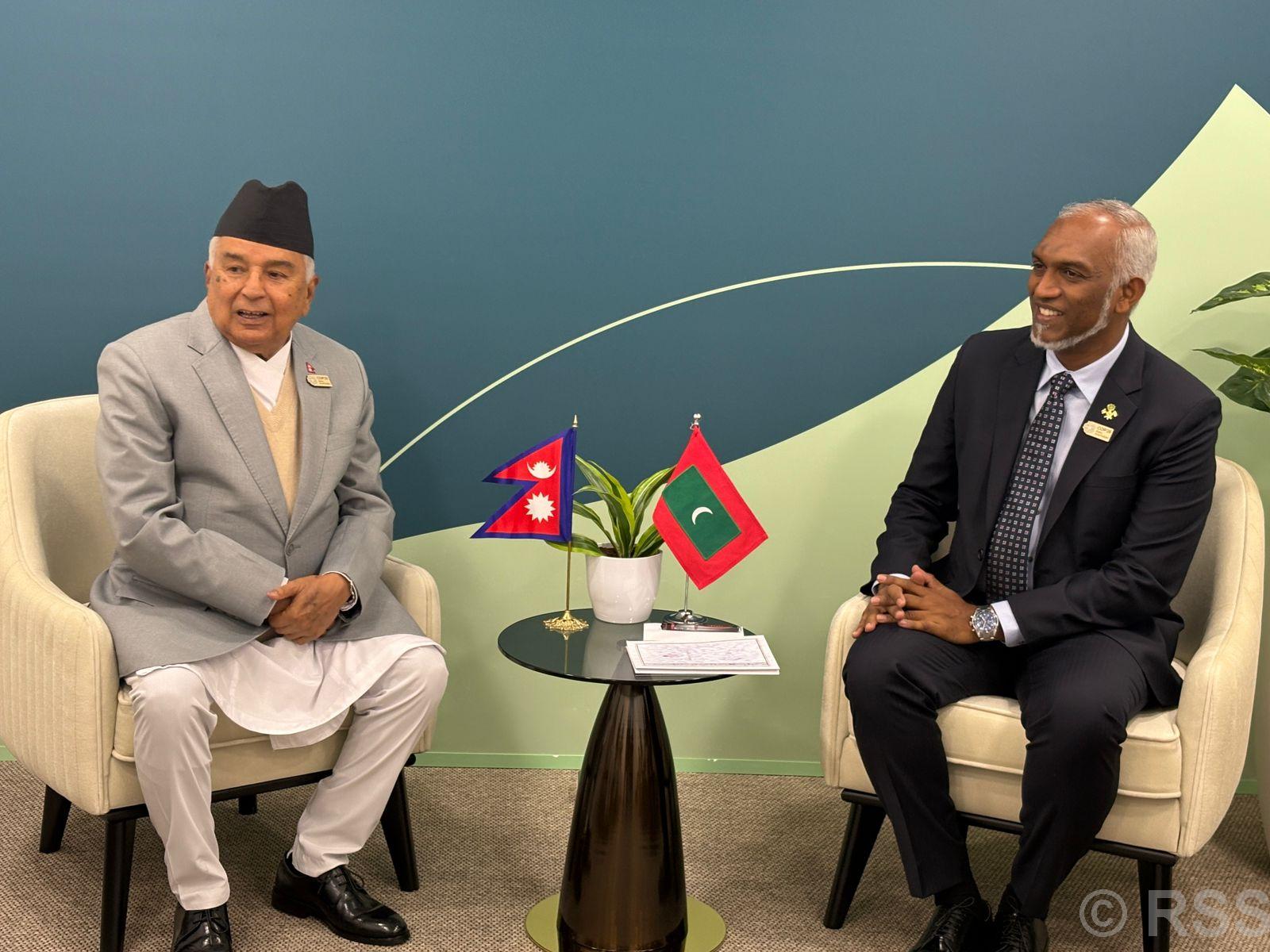 राष्ट्रपति पौडेल र माल्दिभ्सका राष्ट्रपतिबीच भेटवार्ता : जलवायु वार्ताहरुमा सहकार्य गर्नुपर्नेमा जोड