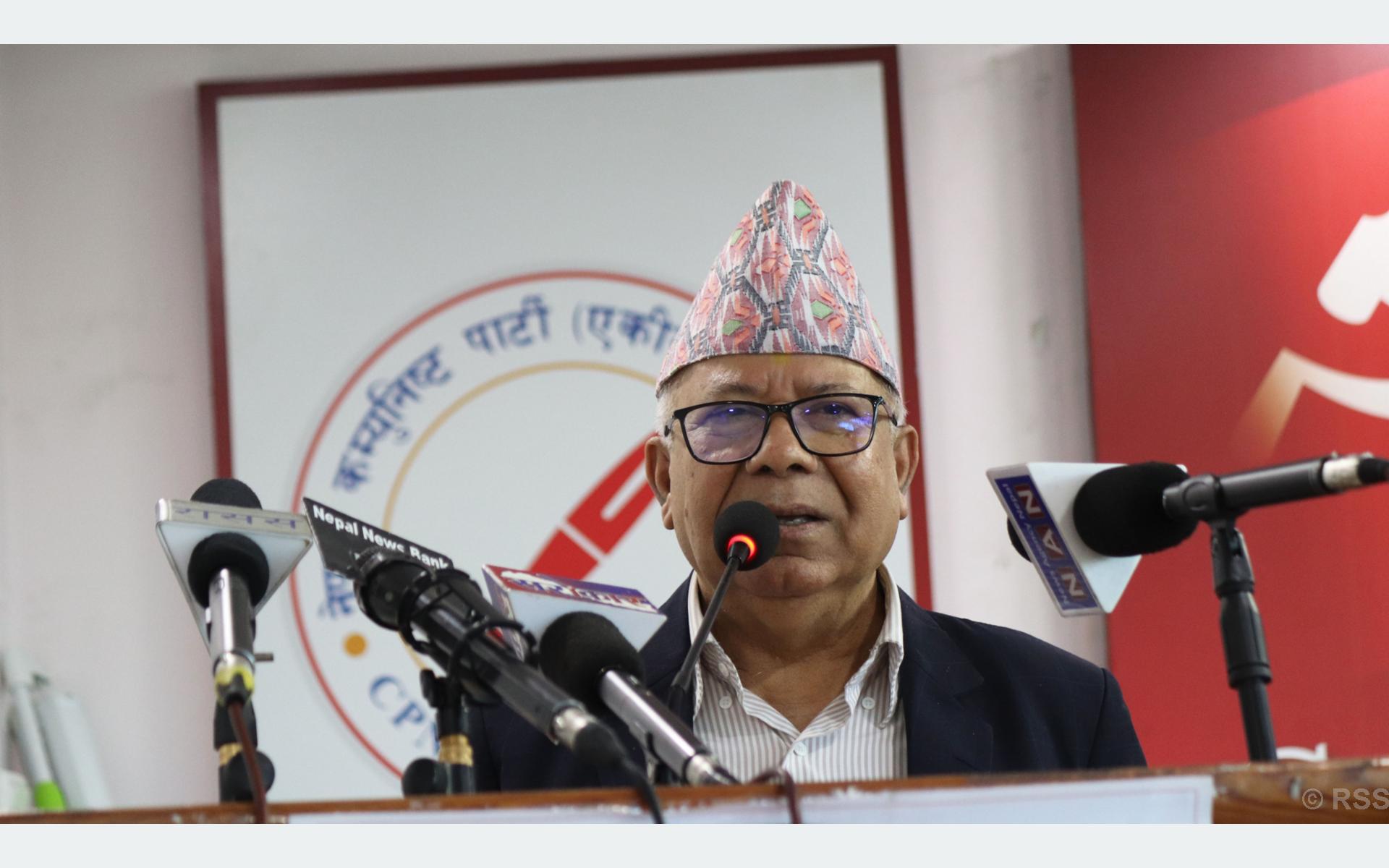 अध्यक्ष नेपालले जनताको आर्थिक तथा सामाजिक समस्या समाधान गरी देशमा विकास गर्न विभिन्न कारणले विभाजित कम्युनिष्ट पार्टी एकीकृत हुनुपर्ने उल्लेख गरे । नेपाली विशेषता बोकेको समाजवादलाई कार्यान्वयन गर्न राष्ट्रिय पुँजीको सञ्चय गरी मुलुकमा औद्योगीकरणको वातावारण बनाउँदै रोजगारी र उत्पादन वृद्धिमा सबैले सहकार्य गर्नुपर्ने उनले बताए ।
