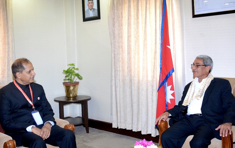 काठमाडौँ । गृहमन्त्री रमेश लेखकसँग भारतीय सशस्त्र सीमा सुरक्षा बल (एसएसबी)का महानिर्देशक अमृतमोहन प्रसादसहितको उच्चस्तरीय टोलीले भेटवार्ता गरेको छ ।