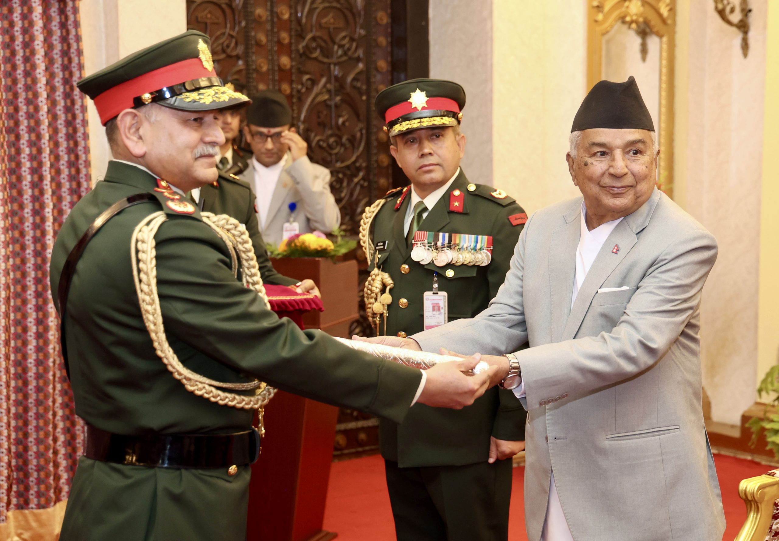 राष्ट्रपति पौडेलद्वारा भारतीय सेनाध्यक्षलाई ‘मानार्थ महारथीको दर्ज्यानी चिन्ह’ प्रदान