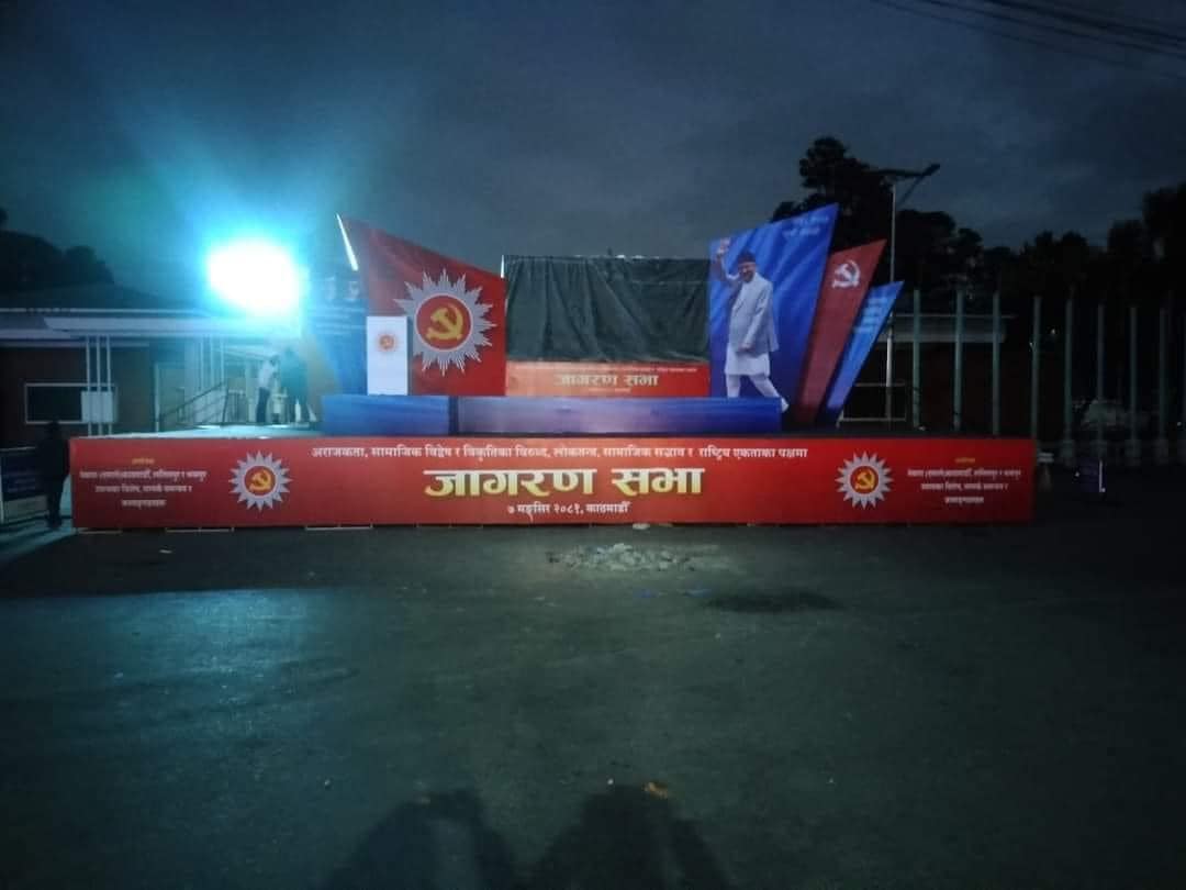 काठमाडौं । सत्ताको नेतृत्व गरिरहेको नेकपा एमालेले आज राजधानीमा शक्ति प्रदर्शन गर्दै छ । एमालेले एक लाख मानिस सडकमा उतारेर ‘जागरणसभा’ गर्न लागेको हो । ‘जागरणसभा’ अपरान्ह साढे १२ बजे काठमाडौंको दरबारमार्गमा हुन लागेको छ ।