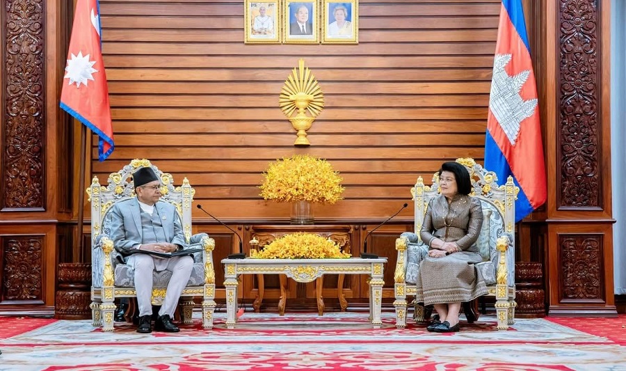 काठमाडौँ । पाँचदिने कम्बोडिया भ्रमणमा रहेका सभामुख देवराज घिमिरेले संसदीय भेटघाट सुरु गरेका छन् । सभामुख घिमिरेले शनिबार साँझ कम्बोडियन समकक्षी तल्लो सदन नेसनल एसेम्ब्लीका अध्यक्षसँग शिष्टाचार भेट गरेको सभामुख घिमिरेको सचिवालयले जनाएको छ ।