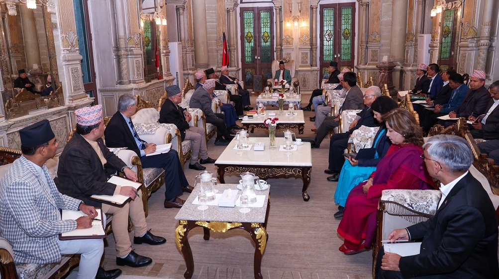 सिंहदरबारस्थित प्रधानमन्त्री तथा मन्त्रिपरिषद्को कार्यालयमा भैरहेको छलफलमा पूर्वप्रधानमन्त्रीहरु एवं परराष्ट्रमन्त्रीहरुको उपस्थिति छ । प्रधानमन्त्री ओलीले भ्रमणका विषयमा सुझाव मागेका छन् ।