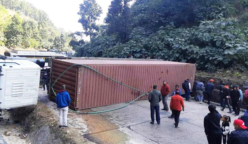 चुरियामाईमा कन्टेनर पल्टियो, पूर्वपश्चिम राजमार्ग पूर्णरुपमा अवरुद्ध