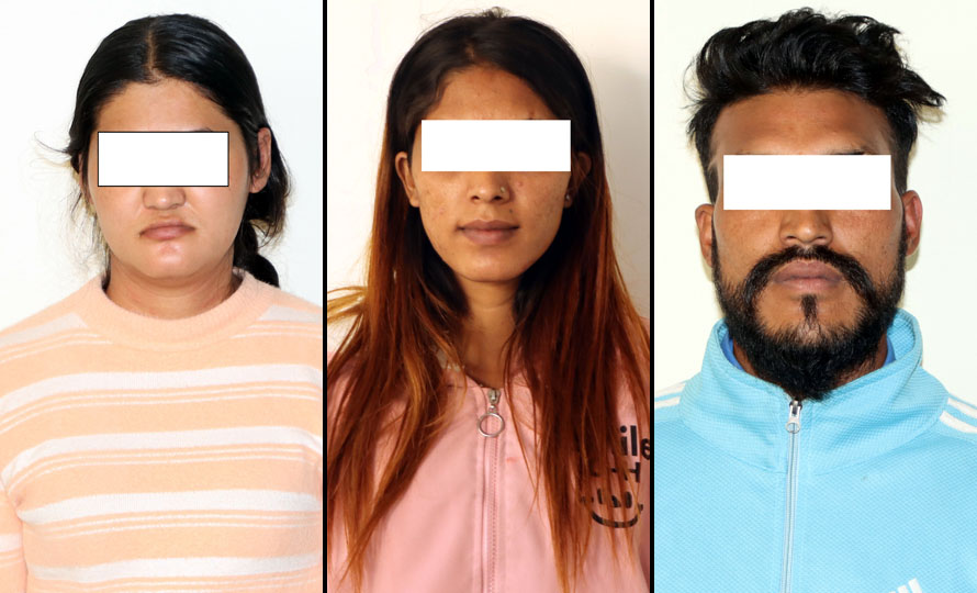 पक्राउ पर्नेमा इलामको माई नगरपालिका–१ घर भई हाल भक्तपुरको मध्यपुर ठिमी नगरपालिका–५ नयाँठिमी बस्ने २५ वर्षीया समृद्धी मगर, काभ्रेको भुम्लु गाउँपालिका–४ कोशीपारी घर भई हाल काठमाडौँ महानगरपालिका–१५ स्वयम्भू बस्ने ३० वर्षीय दिपेन्द्र दर्जी तथा काभ्रेको भुम्लु गाउँपालिका–४ कोशीपारी घर भई हाल हाल भक्तपुरको मध्यपुर ठिमी नगरपालिका–५ नयाँठिमी बस्ने २६ वर्षीय वर्षा दर्जी रहेको काठमाडौँ उपत्यका अपराध अनुसन्धान कार्यालय टेकुका सूचना अधिकारी एवं प्रहरी उपरीक्षक काजीकुमार आचार्यले जानकारी दिए ।