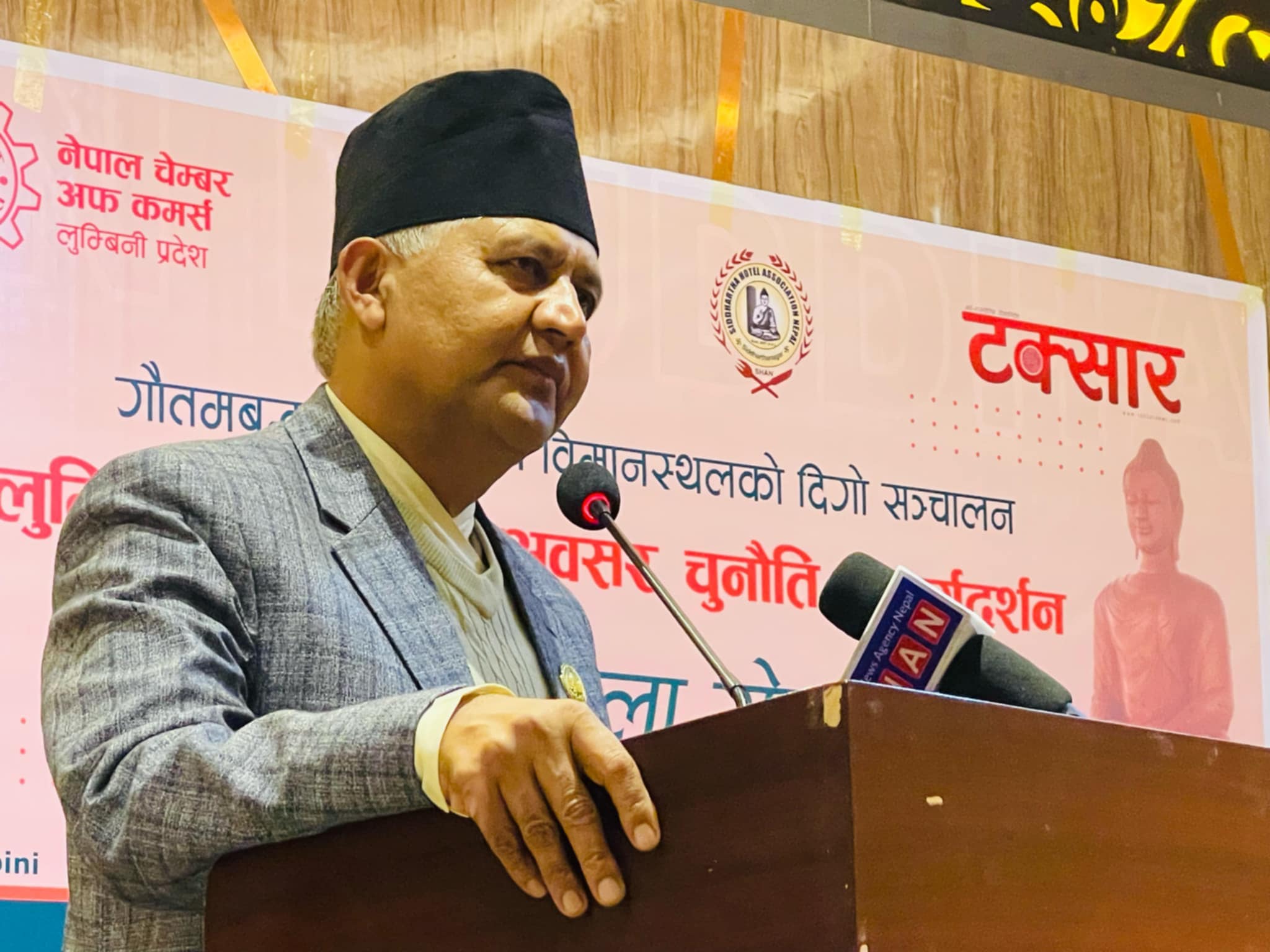 गौतमबुद्ध अन्तर्राष्ट्रिय विमानस्थल सञ्चालनमा आएपछी पर्यटन व्यवसायले फड्को मार्ने चरणमा रहेको बताउदै सोही अनुसारको पर्यटन पूर्वाधारमा लगानी बढाउन जोड दिए । लुम्बिनी आउने पर्यटकलाई लुम्बिनी पर्यटन सर्किटको माध्यमबाट प्रदेशभर भ्रमणको वातावरण सरकारले बनाउने प्रतिबद्धता व्यक्त गरे ।