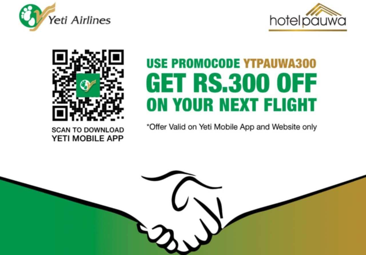 होटल पौवाको प्रोमो कोडबाट यति एयरलाइन्सको हवाई यात्रामा छुट पाइने