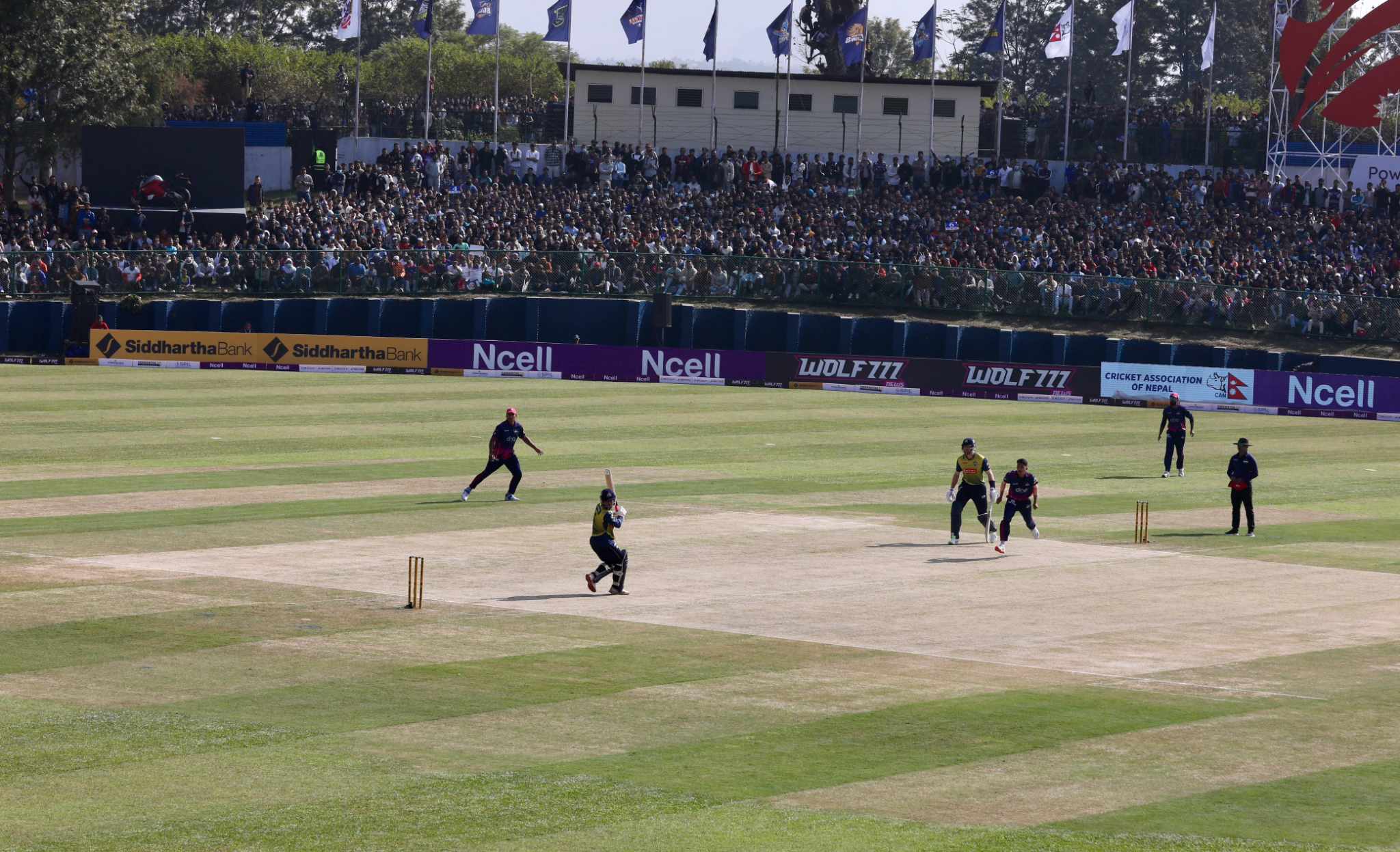 तेस्रो विकेटका लागि मिलन्था र थाकरले अविजित ११६ रनको साझेदारी गरे । विराटनगरका लागि प्रतिस जिसी र क्रिस सोलले समान एक विकेट लिए ।