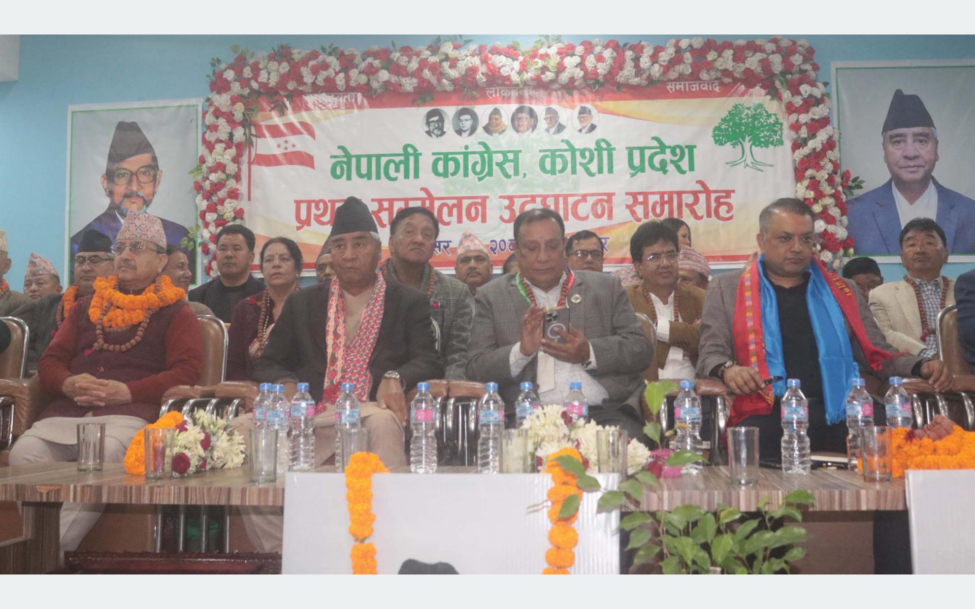कांग्रेस कोशी प्रदेशका सभापति उद्धव थापाको सभापतित्वमा भएको सम्मेलनमा कांग्रेसका नेताहरू विजयकुमार गच्छदार, डा शशांक कोइराला, डा प्रकाशशरण महत, राजीव कोइराला, अमृत अर्याल, सरिता प्रसाईं, डिला सङ्ग्रौला, गोमा भट्टराईलगायत नेताहरूले सम्मेलन सफलताको सुभकामना व्यक्त गरेका थिए ।