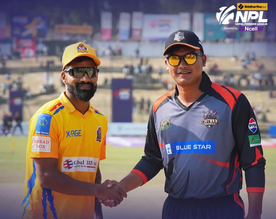 काठमाडौं । नेपाल प्रिमियर लिग (एनपीएल)को आठौँ दिनको दोस्रो खेलमा सुदूरपश्चिम रोयल्सविरुद्ध चितवन राइनोजले टस जितेको छ ।