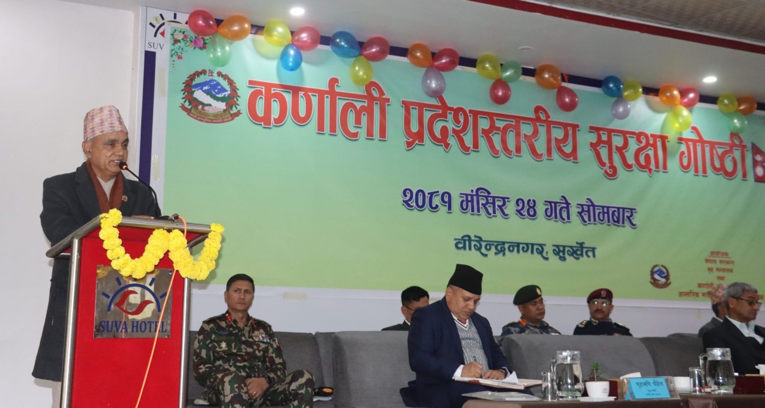 गृह मन्त्रालय र कर्णाली प्रदेशको आन्तरिक मामिला तथा कानून मन्त्रालयद्धारा आयोजित गोष्ठीमामा पगृहमन्त्री रमेश लेखकले संघीयता अनुसारको कानून बनाउने प्रतिबद्धता व्यक्त गरे । सरकारको निरन्तर अस्थिरताले मुलुकमा विकास ,शान्ति सुरक्षा विकास र आर्थिक समृद्धिमा बाधक बनेकोले संविधानको रक्षा गरी मुलुकमा स्थिरता दिन दुई ठूला दल मिलेर सरकार संचालन गरेको बताउदै गुहमन्त्री लेखकले सेवा प्रवाह र सुशासनको विषयमा कुनै पनि सम्झौता नगेर काम गर्न निर्देशन दिए ।