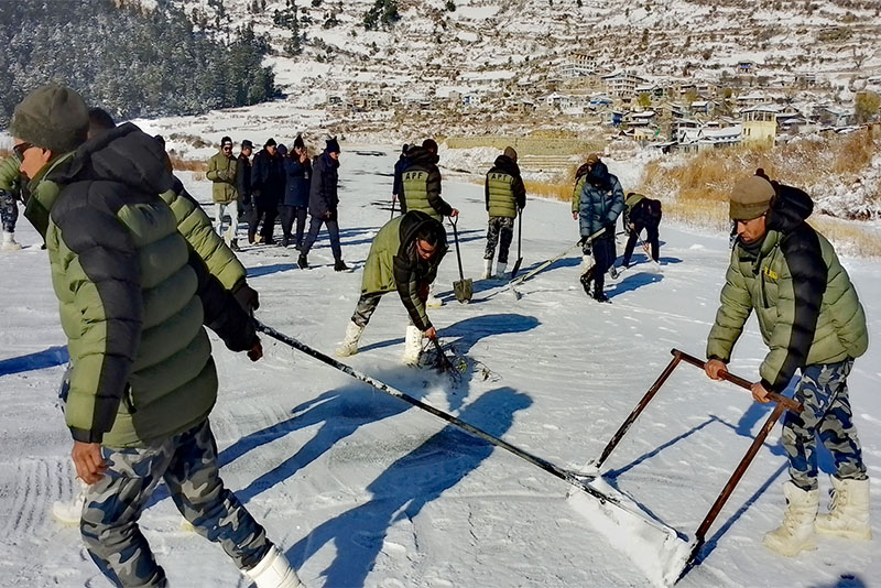 विमानस्थलको हिउँ पन्छाएपछि हवाई सेवा सञ्चालन