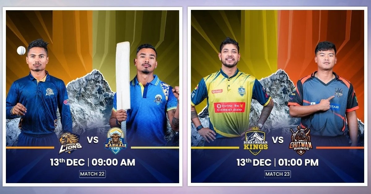 यता, विराटनगरविरुद्ध मैदान उत्रिँदा कुशल मल्लको कप्तानीमा रहेको चितवन भने जितसहित प्लेअफ सम्भावनालाई बलियो बनाउने लक्ष्यमा हुनेछ ।तालिकाको तेस्रो स्थानमा आसीन चितवनले पाँच खेलमा तीन जितसहित ६ अंक जोडेको छ ।