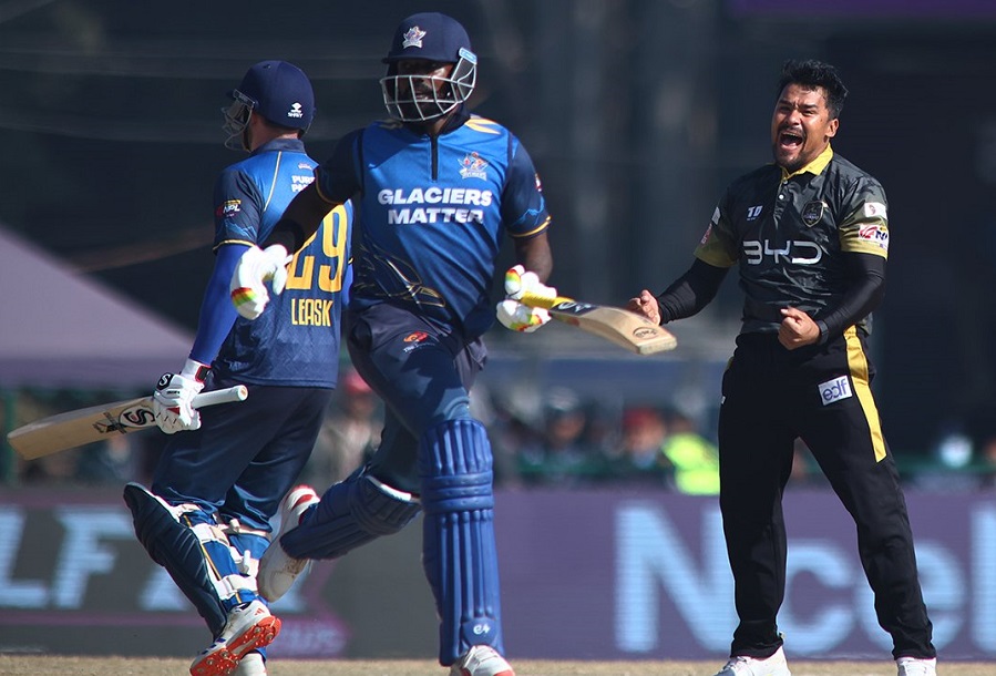काठमान्डुका लागि रासिद खान र करण केसीले समान ३ विकेट झारे। यसैगरी जेहार्ड इरासमस र माइकल लेविटले एक एक विकेट लिए।