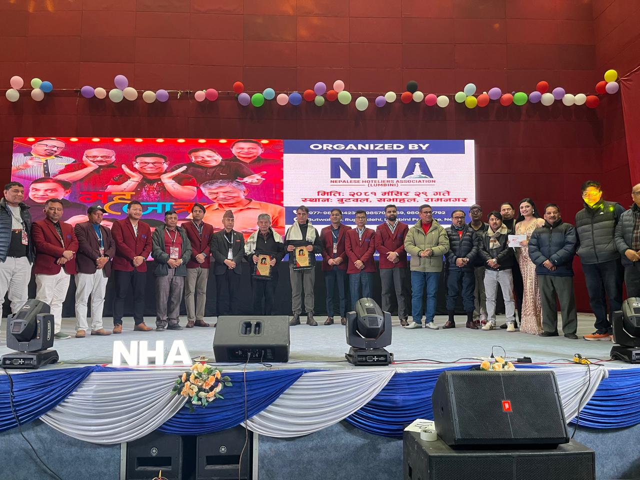 शनिबार बुटवलमा आयोजित मह जात्रामा कलाकार द्वय मदनकृण श्रेष्ठ तथा हरिवंश आचार्यलाई दाेषल्ला तथा प्रमाणपत्र सहित एसोसिएसनले सम्मान गरेको हो । कलाकार मदनकृत श्रेष्ठ तथा हरिवंश आचार्य नेपाली कला क्षेत्रमा मित्रताको एउटा आदर्श जोडीका रूपमा मानिन्छन् । उनीहरू ४५ वर्ष देखि निरन्तर कलाकार जोडीका रूपमा सहकार्य गरीरहेका छन् । एक दशकको अन्तराल पछि पुनः मह जात्रा  लिएर आएको मह सञ्चारले बुटवल मण्डप स्थित  सभा हलमा मह जात्रा प्रहसन प्रस्तुत गरेको हो ।