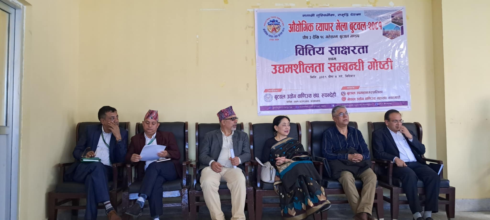 औद्योगिक व्यापार मेलाका अवसरमा वित्तिय साक्षरता लगायतका विषयमा अन्तरक्रिया कार्यक्रमहरु राखिएको संघका महासचिव मुक्तिप्रसाद अधिकारीले जानकारी गराए । बुटवल उद्योग वाणिज्य संघ रुपन्देहीको आयोजना तथा बुटवल उपमहानगरपालिका र नेपाल उद्योग वाणिज्य महासंघको संरक्षकत्वमा बुधबारदेखि सुरु भएको औद्योगिक व्यापार मेला यहि पुसको १८ गतेसम्म चल्नेछ ।