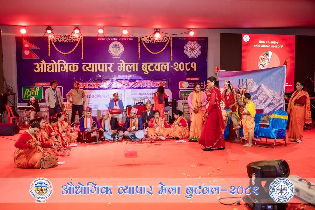 बुटवल । बुटवलमा सञ्चालन भईरहेको औद्योगिक व्यापार मेला बुटवल २०८१ मा आयोजना गरिएको विद्यालय स्तरीय लोकदोहोरी गित प्रतियोगितामा बुटवलको कालिका मावन ज्ञान माध्यमिक विद्यालयको समुह प्रथम भएको छ । आईतबार भएको फाईनल प्रतिस्पर्धामा जगन्नाथ माध्यमिक विद्यालय सुनवलको समुहलाई पछि पार्दै कालिका मानव ज्ञानको समुह प्रथम भएको हो ।