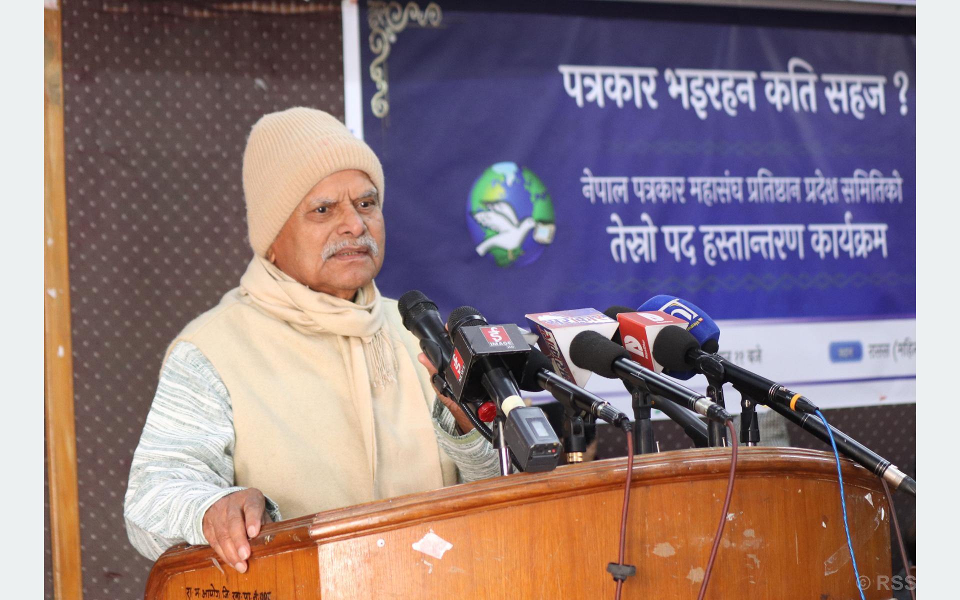 नेपाल पत्रकार महासङ्घ प्रतिष्ठान प्रदेशको तेस्रो पद हस्तान्तरण कार्यक्रमका अवसरमा यहाँ आयोजित ‘पत्रकार भइरहन कति सहज ?’ विषयक अन्तरक्रियामा उनले पत्रकारिताको धर्म र नैतिकतालाई व्यवस्थित गरेर लैजान सकेको खण्डमा सिङ्गो पत्रकारिताको माध्यमबाट लोकतन्त्र र प्रजातन्त्र सुदृढ हुने विश्वास व्यक्त गरे ।
