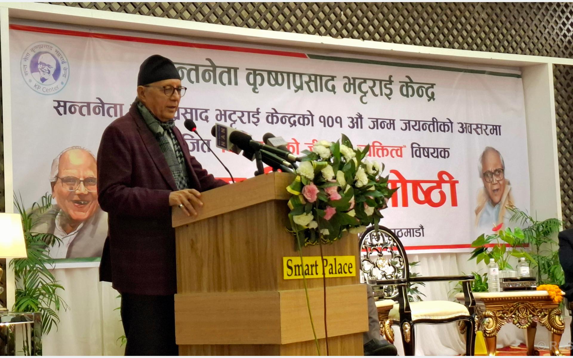सन्त नेता कृष्णप्रसाद भट्टराईको १०१ औँ जन्म जयन्तीका अवसरमा यहाँ आयोजित ‘किसुनजीको जीवन र व्यक्तित्व’ विषयक विचार गोष्ठीलाई सम्बोधन गर्दै उनले स्वर्गीय नेताहरूले देखाएको बाटो अनुसरण गर्ने सङ्कल्प गर्न आग्रह गरे । उनले भने, “किसुनजी लगायतले जुन बाटो देखाउनुभएको छ । त्यो बाटोमा हिँड्न सक्नुपर्छ र हामी हिँड्छौँ भन्ने सङ्कल्प लिन्छौँ ।”