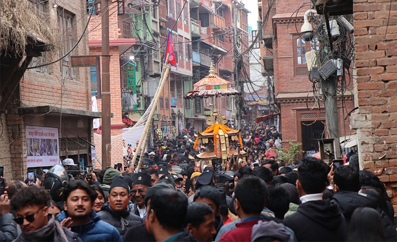 भक्तपुर । मध्यपुरथिमि नगरपालिकाले २६ वर्षपछि आयोजना गरेको तीनदिने ‘मध्यपुर महोत्सव’ मा अवलोकनकर्ताको घुइँचो लागेको छ । महोत्सवको आज दोस्रो दिन शङ्खधर साख्वाः चोकबाट बालकुमारी, चपाचो, बाहाखाबजारसम्म अवलोकन गर्न आउनेको घुइँचो लागेको हो ।