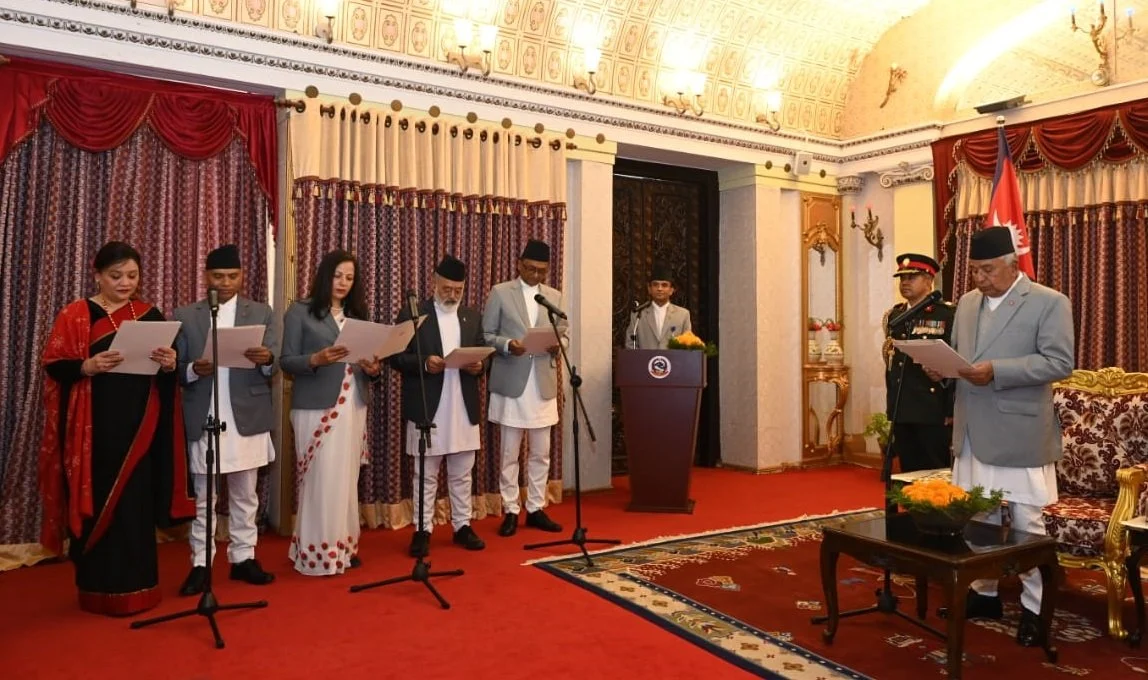 राजदूत प्रकाशमणी पौडेल गणतन्त्र पोर्चुगल, डा। नेत्रप्रसाद तिम्सिना मलेसिया, प्राडा कपिलमान श्रेष्ठ गणतन्त्र दक्षिण अफ्रिका, सेवा लम्साल बेल्जियम अधिराज्य र सुम्निमा तुलाधर डेनमार्कले आज राष्ट्रपति पौडेलसमक्ष पद तथा गोपनीयताको शपथ लिएका हुन् ।