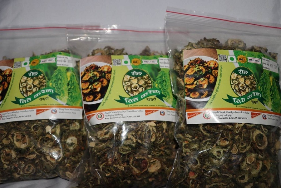 गाउँपालिकाले करेलालाई सुकाएर सुकुटीका रूपमा प्रशोधन गरी बिक्री सुरु गरेको हो । “यस वर्ष बिक्रीका लागि दुई सय किलो सुख्खा तितेकरेला तयार छ”, गाउँपालिका अध्यक्ष मणिकुमार स्याङ्बोले भने, “यहाँका अधिकांश किसानले व्यावसायिक खेती सुरु गर्नुभएकाले अर्को वर्ष धेरै उत्पादन हुनेछ । एक पटकमा ५० हजार किलो काँचो करेला प्रशोधन गर्न सक्ने उद्योग निर्माण भइरहेको छ ।”