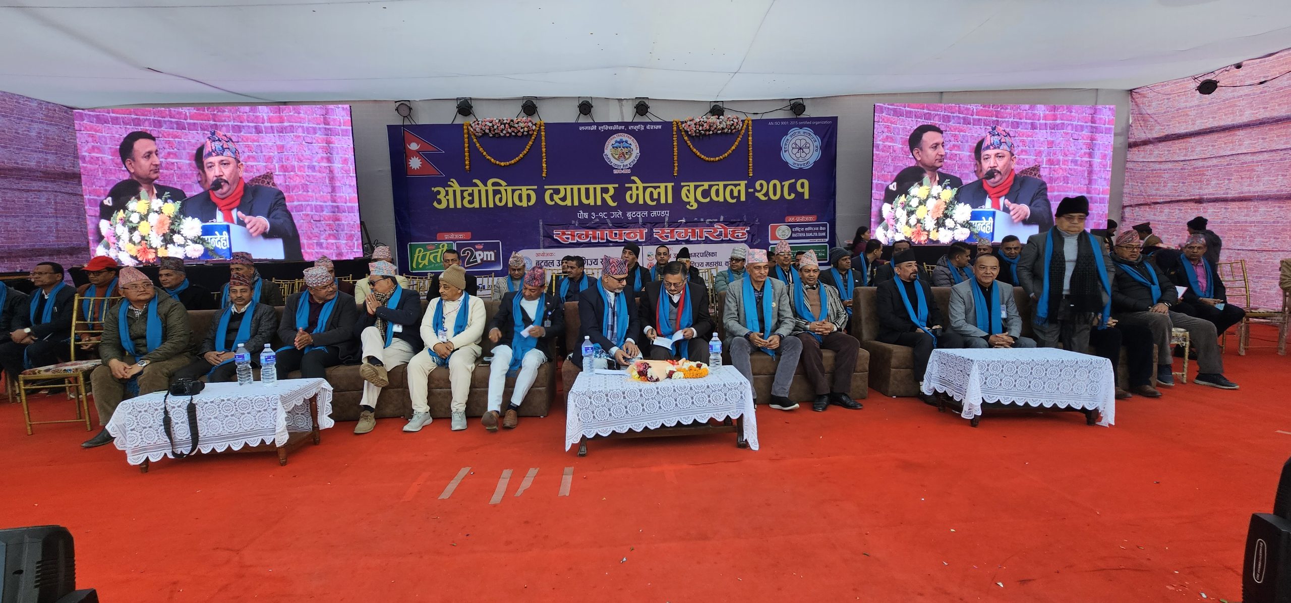 बुटवल । बुटवलमा सञ्चालित औद्योगिक व्यापार मेला सकिएको छ । ‘लगानी लुम्बिनीमा : समृद्धि देशमा’ भन्ने नारा सहित बुटवल उद्योग वाणिज्य संघ रुपन्देहीको आयोजना तथा बुटवल उपमहानगरपालिका र नेपाल उद्योग वाणिज्य महासंघको संरक्षकत्वमा अन्तर्राष्ट्रिय प्रदर्शनीस्थल बुटवल मण्डपमा यहि पुसको ३ गतेदेखि सञ्चालन गरिएको औद्योगिक व्यापार मेला बिहिबार सकिएको हो ।