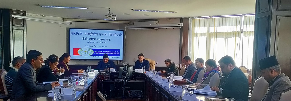 काठमाडौ । राष्ट्रिय वाणिज्य बैंक लिमिटेडको पूर्ण स्वामित्वमा सञ्चालित सहायक कम्पनी आरविवि सेक्युरिटीज कम्पनी लिमिटेडकोे दोस्रो वार्षिक साधारण सभा सञ्चालक समितिका अध्यक्ष एवं राष्ट्रिय वाणिज्य बैंकका नायब प्रमुख कार्यकारी अधिकृत देवेश प्रसाद लोहनीको अध्यक्षतामा शुक्रबार सम्पन्न भएको छ । साधारण सभाले आ.व. २०८०/०८१ को कम्पनीको वार्षिक प्रतिवेदन प्रस्ताब पारित गरेको छ ।