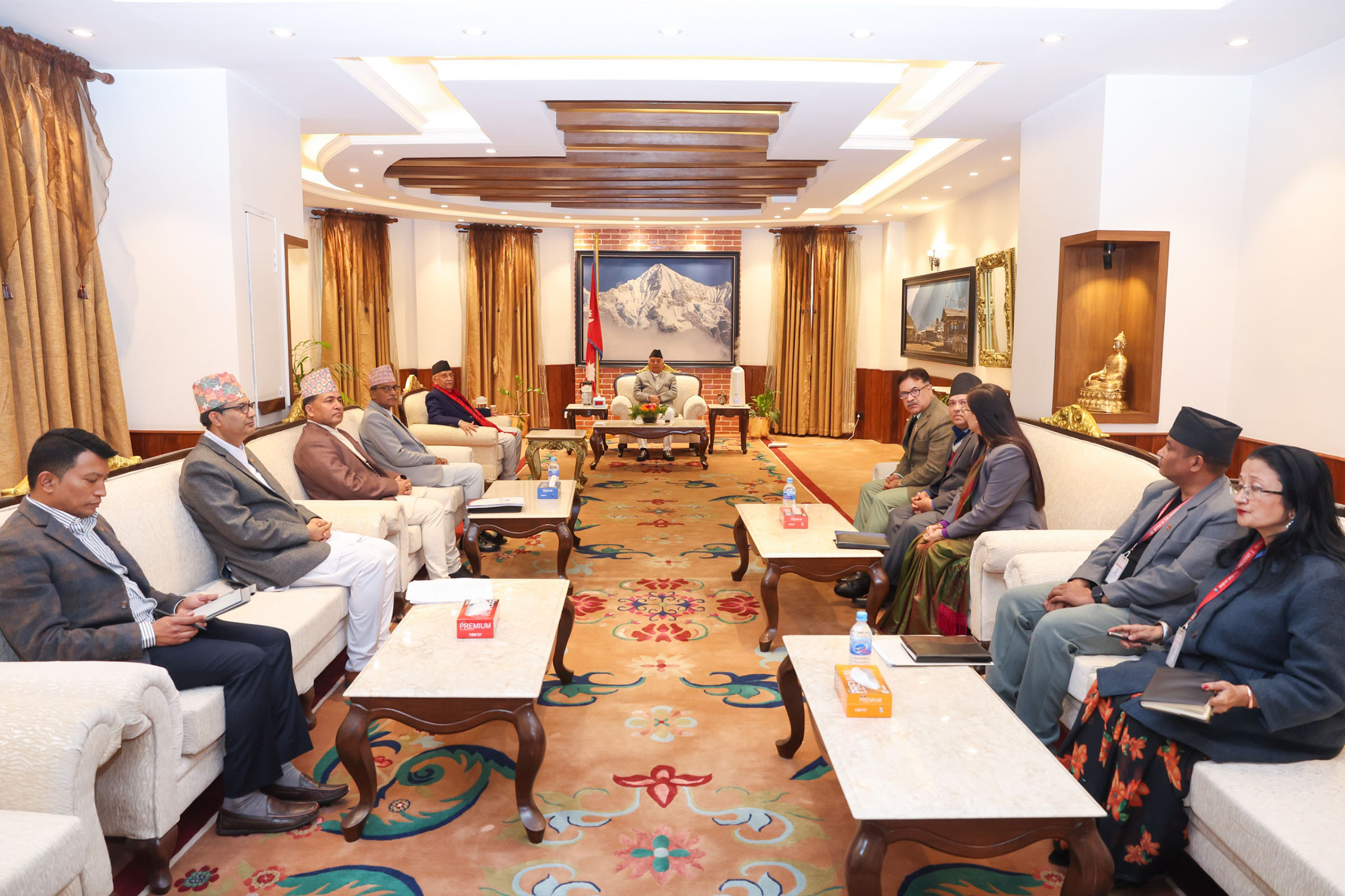 काठमाडौं । राष्ट्रपति रामचन्द्र पौडलसँग प्रधानमन्त्री केपी शर्मा ओलीले आज अपराह्न शिष्टाचार भेट गरेका छन । राष्ट्रपति भवनमा भएको भेटमा उनीहरुबीच मुलुकको समसामयिक विषयमा छलफल भएको प्रधानमन्त्रीको निजी सचिवालयले जनाएको छ ।