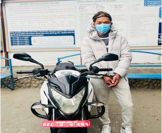 काठमाडौं । काठमाडौंको गोकर्णेश्व्र नगरपालिका-४ जग्डोलबाट आइतबार मोटरसाइकल चोरीमा संलग्न एकजनालाई ट्राफिक प्रहरीले नियन्त्रणमा लिएको छ ।