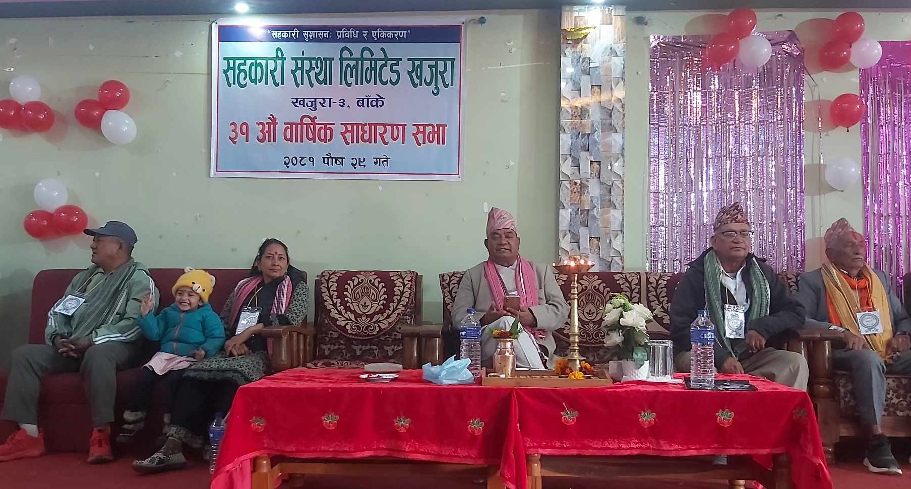 खजुरा सहकारी संस्थामा ६०३ जना शेयर सदस्य आवद्ध छन् । कार्यक्रममा पूर्व अध्यक्षहरु बेदनिधि प्याकुरेल र बिर प्रसाद देवकोटा, रेडक्रस खजुराका सभापति जीवनाथ सापकोटा, बागेश्वरी सहकारीकी अध्यक्ष कमला न्यौपानेलगायतले साधारणसभा र अधिवेशनको सफलताको शुभकामना ब्यक्त गरेका थिए ।