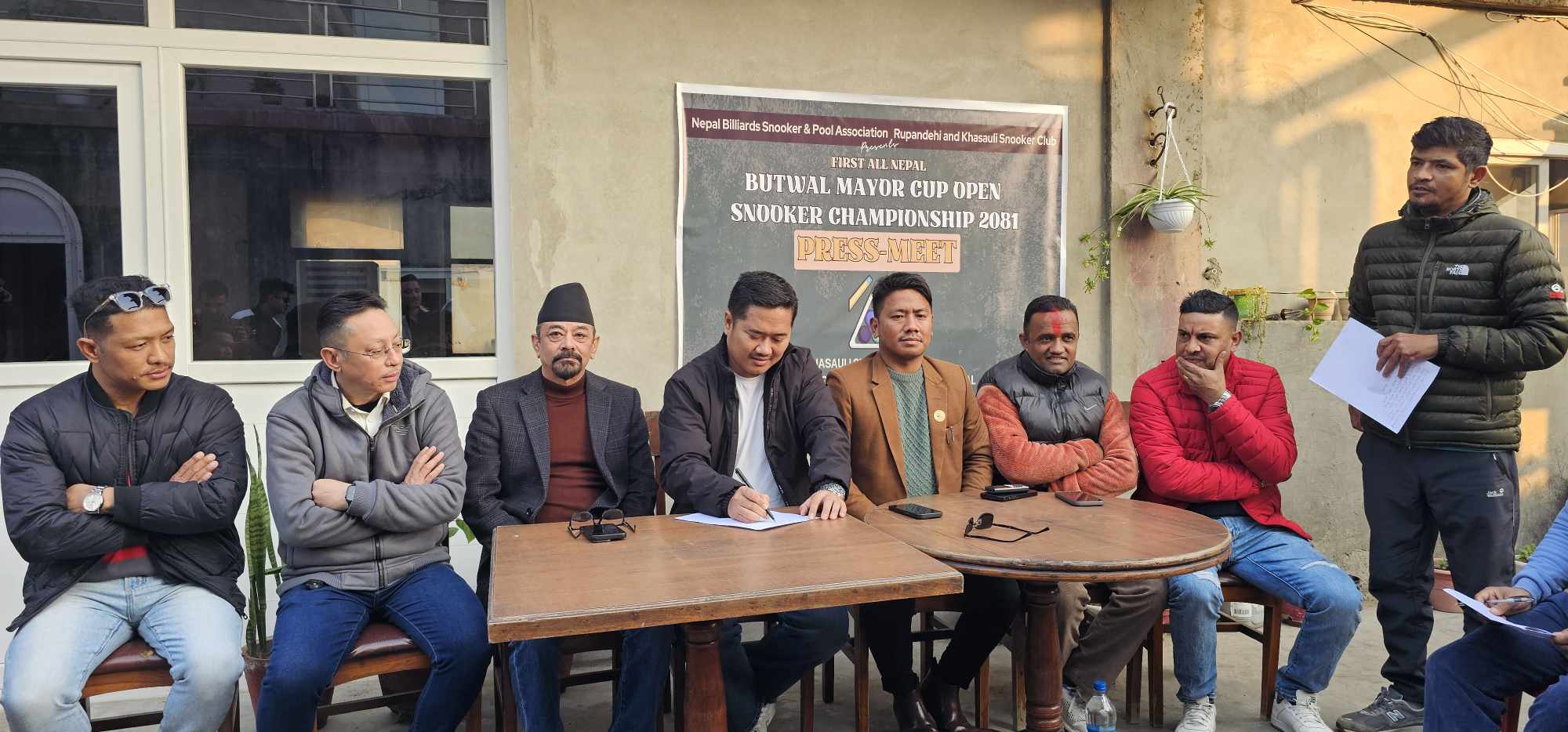 एशोसियशनले सोमबार पत्रकार सम्मेलन गरि फागुनको १२ गतेदेखि प्रथम अल नेपाल बुटवल मेयर कप ओपन स्नुकर प्रतियोगिता बुटवल २०८१ हुने लागेको बताएका छ । नेपाल बिलियार्ड स्नुकर एण्ड पुल एशोसियसन रुपन्देहीका अध्यक्ष सुजन पुनले रुपन्देहीमा सर्वाधिक राशीको प्रतियोगिता गर्न लागेको जानकारी दिए ।