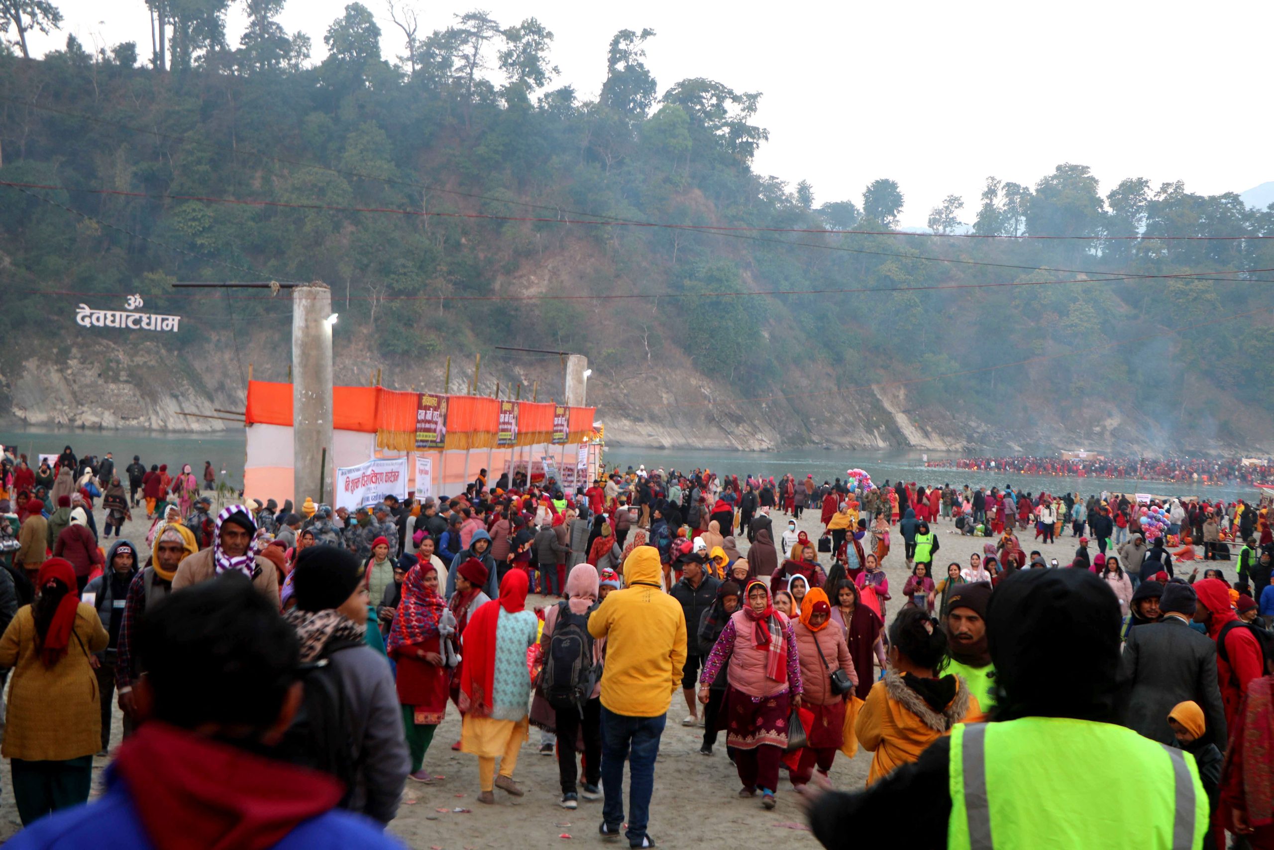 नवलपुर । हिन्दू धर्मावलम्बीहरूको पवित्र तीर्थस्थल देवघाटधाममा माघे सङ्क्रान्ति स्नान गर्न आउने तीर्थालुको घुइँचो लागेको छ । तीर्थालुको सुविधाका लागि गैँडाकोटबाट निःशुल्क डुङ्गाको व्यवस्था गरिएको छ । नवलपरासी (बर्दघाट-सुस्तापूर्व), तनहुँ र चितवनमा पर्ने कालीगण्डकी र त्रिशूली नदीको सङ्गमस्थल देवघाटको बेनीमा स्नान गर्न जान जिल्लाको गैँडाकोट-३ नम्बर वडा कार्यालयले निःशुल्क डुङ्गाको व्यवस्था गरेको हो ।