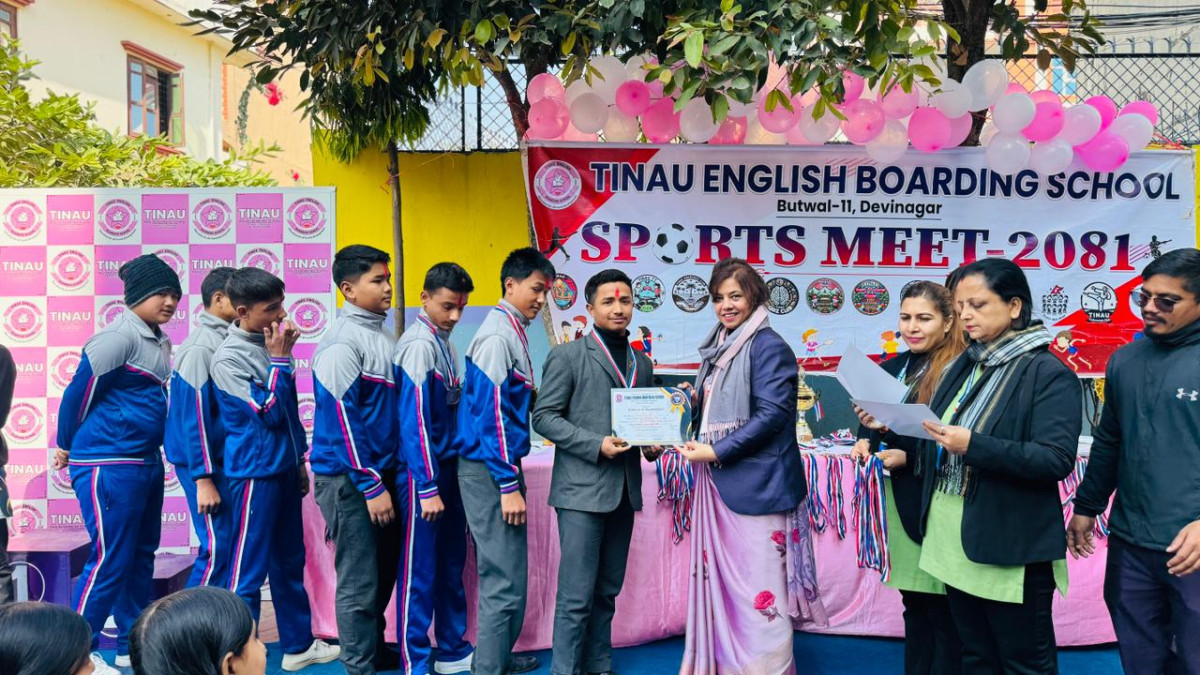 बुटवल । तिनाउ ईङ्गलिस बोर्डिङ स्कुलमा खेल सप्ताह-२०८१ समापन गरिएको छ । सप्ताहको आज एक कार्यक्रमका बीच पुरस्कार वितरण गरी समापन गरिएको हो ।