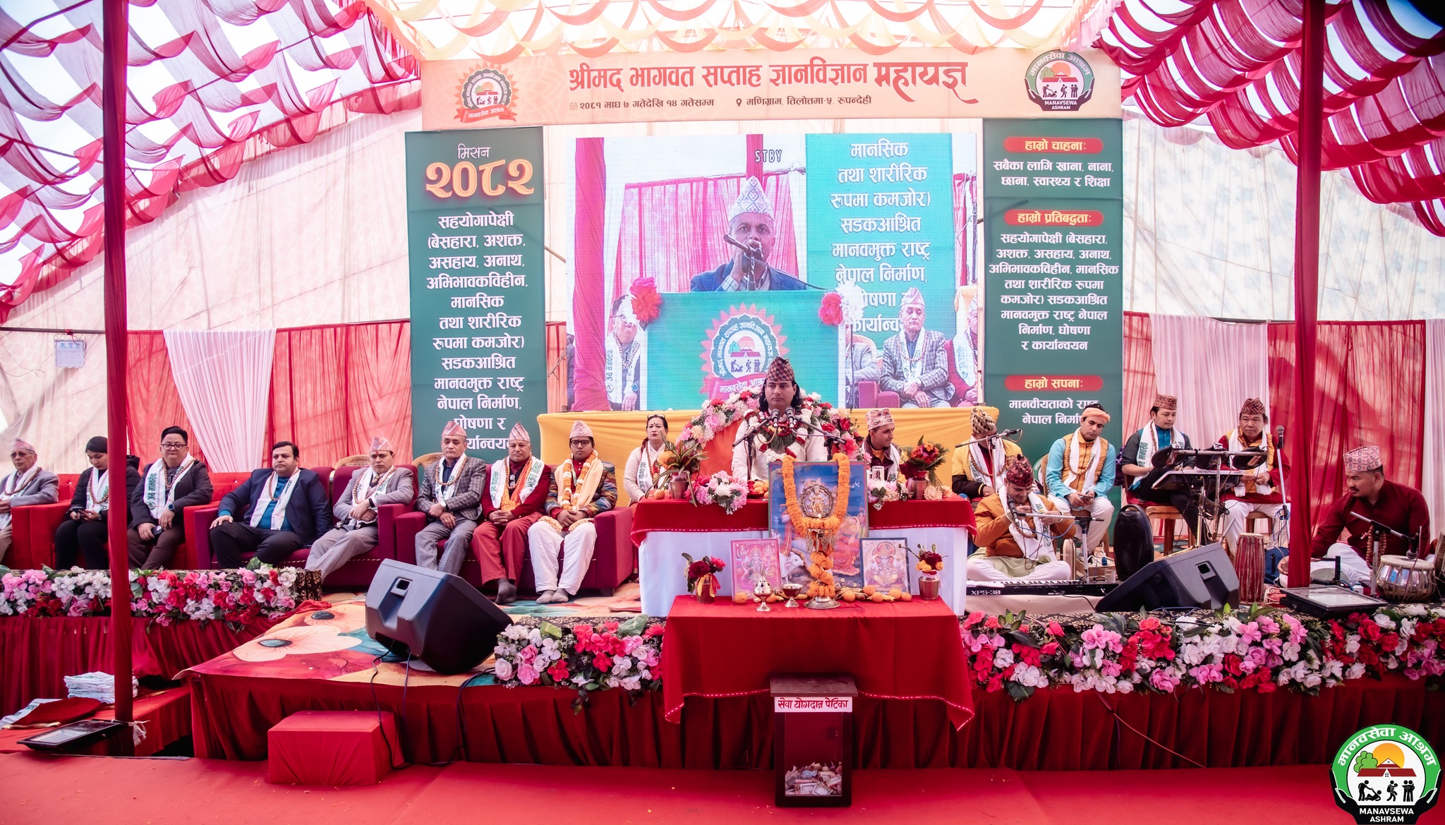 बुटवल । मानवसेवा आश्रमको लुम्बिनी प्रदेश रुपन्देही शाखा स्तरोन्नति र अक्षयकोष श्रीवृद्धिका लागि सुरू भएको श्रीमद्भागवत सप्ताह ज्ञान-विज्ञान महायज्ञमा दान गर्ने दाताहरूको भीड लागेको छ । महायज्ञको चौथो दिन आज बिहीबार मौसम प्रतिकूल रहे पनि दाताहरूको सहभागीतामा भने कमी आएको छैन ।