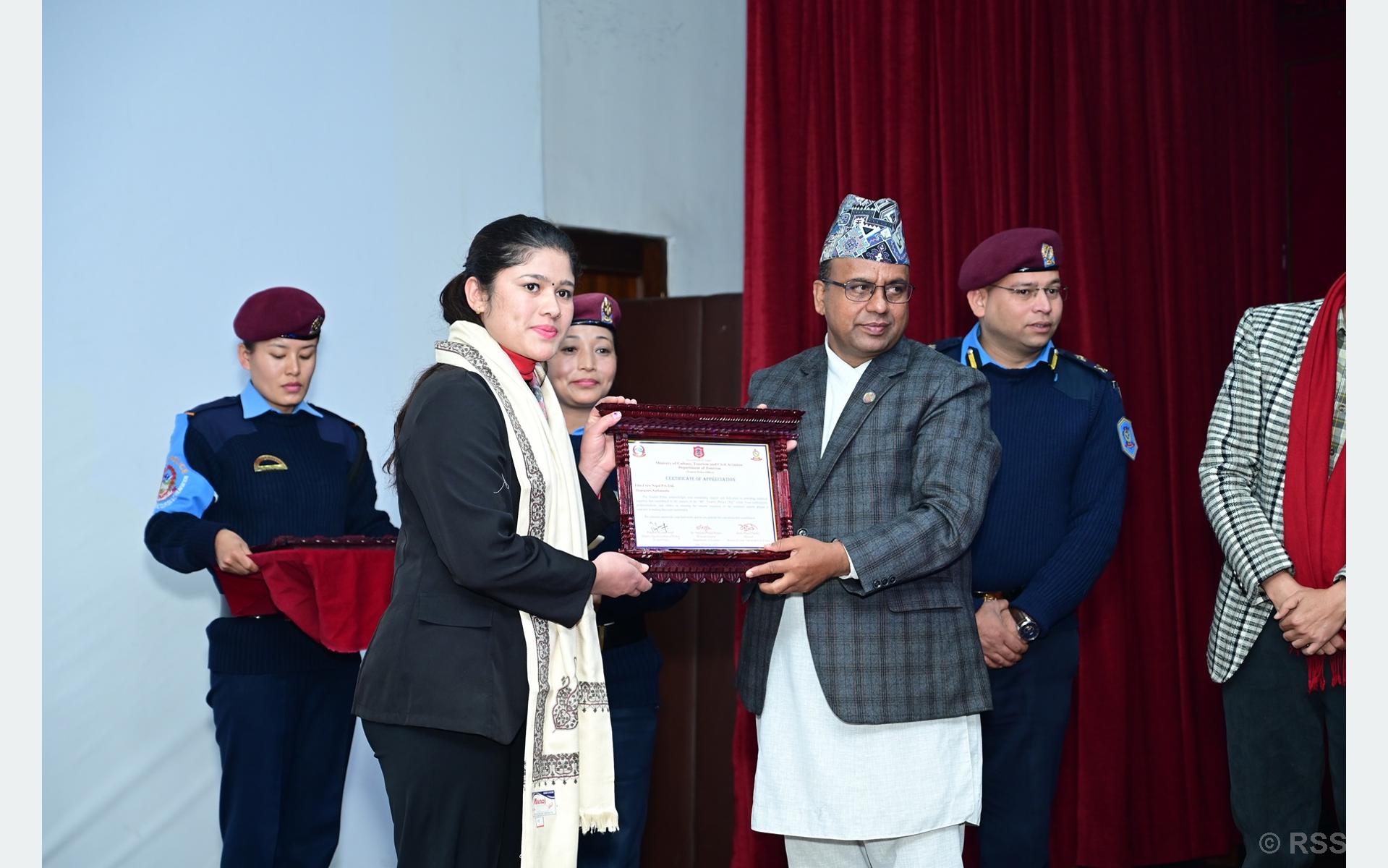 प्रहरी महानिरीक्षक वसन्तबहादुर कुँवरले उत्कृष्ट कार्य गर्ने पर्यटक प्रहरी कर्मचारीहरूलाई प्रशंसापत्र प्रदान गरे । उनले पर्यटकहरूको सुरक्षा प्रहरीको एकल प्रयासले मात्र सम्भव नहुने हुँदा त्यसका लागि सरोकारवाला सबै निकायको समन्वयात्मक भूमिका अपरिहार्य रहेकामा जोड दिए ।