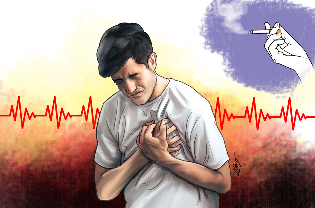 गंगालाल अस्पतालले सन् २०१८ मा एक हजार छ सय ६० जनामा हृदयाघात भएर आएकामध्ये गरेको पछिल्लो अध्ययनअनुसार ४५ वर्षभन्दा मुनिका ११ दशमलव ८ प्रतिशतलाई हृदयाघात चुरोट सेवनका कारण भएको जनाइएको छ । यस्तै उच्चरक्तचाप ३६ दशमलव ६ प्रतिशत, मधुमेह २५ दशमलव ३ प्रतिशत र कोलस्टोरोल ७ दशमलव ८ प्रतिशतलाई हुने गरेको छ । उनले विभिन्न समयमा गरिएको अध्ययन अनुसार ४५ बर्ष मुनिका चुरोट खानेमा हृदयाघात बढदै पाइएको बताए ।