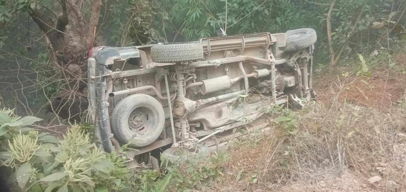 वालिङबाट सिरबानी तर्फ जाँदै गरेको ग१च ८९१३ नम्बरको स्कारपियो बाटोबाट करिब चार मिटर तल खसेको थियो।