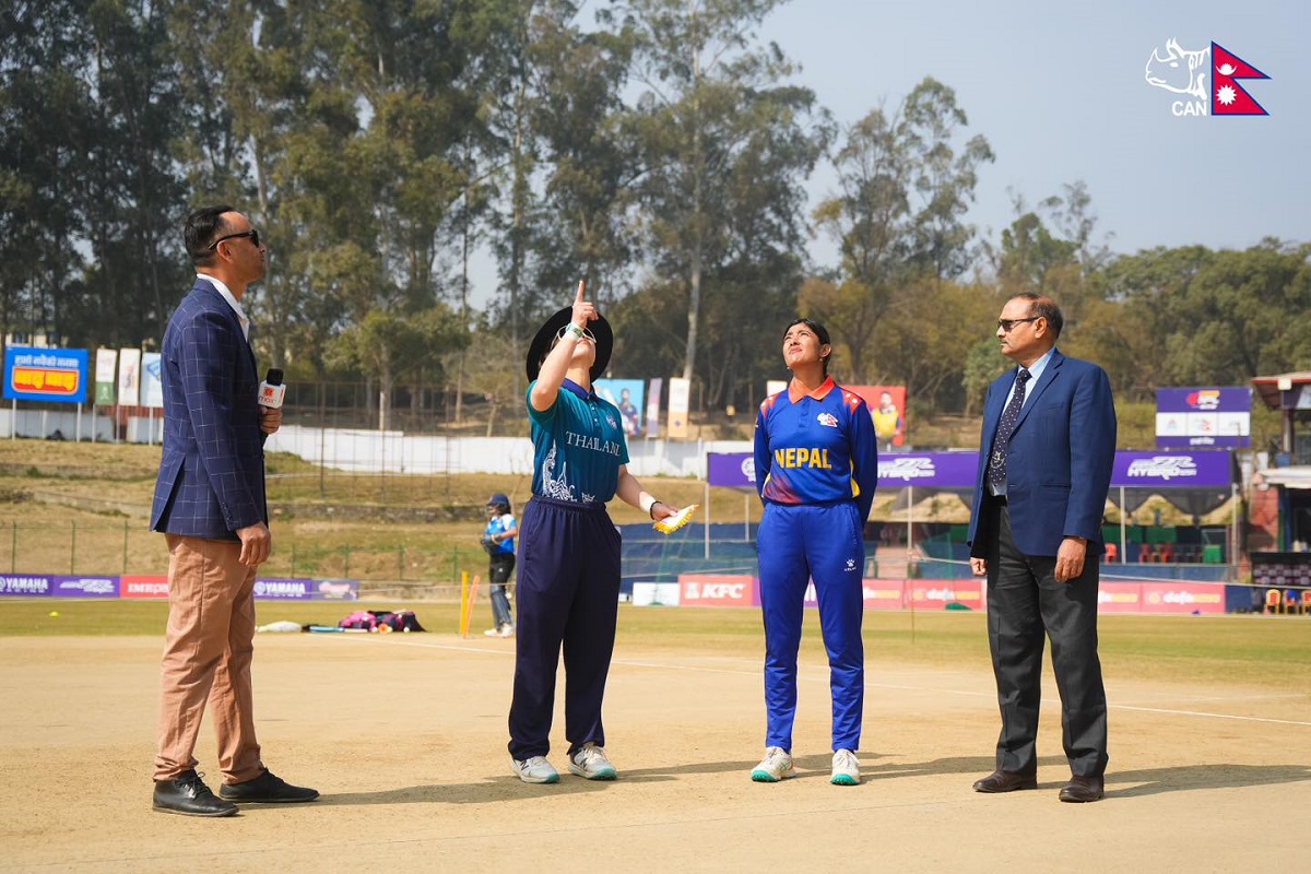 काठमाडौं । त्रिकोणात्मक टी-२० शृङ्खलाअन्तर्गतको आज थाइल्याण्डविरुद्धको खेल नेपालले पहिले बलिङ गर्ने भएको छ । कीर्तिपुरस्थित त्रिभुवन विश्वविद्यालय क्रिकेट मैदानमा भर्खरै भएको टसमा थाइल्याण्डकी कप्तान नरौमोल चाइवाइले टस जित्दै पहिले ब्याटिङ गर्ने निर्णय लिइन् ।