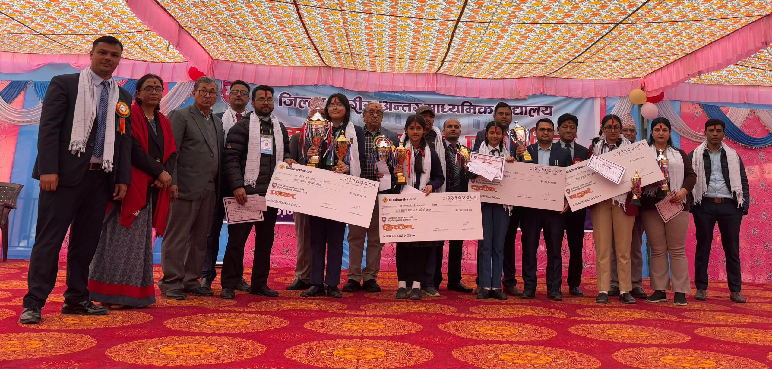 यसैगरी दुर्गा शैक्षिक गृहकी छात्रा प्रिन्सु पौडेल सान्त्वना स्थान हासिल गरी ७ हजार ५०० नगद राशी प्रप्त गरेको कार्यक्रमका संयोजक शंकर पाण्डेले जानकारी दिए । प्रतियोगितामा जिल्लाका २५ वटा विद्यालयको सहभागिता रहेको थियो । प्रतियोगितालाई निस्पक्ष बनाउका लागि आयोजक सिद्धार्थ बोर्डिङले भने सहभागिता नजनाउने नियम रहेको छ ।