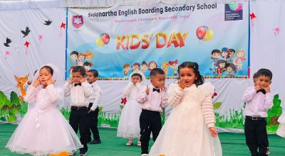 बुटवल । रुपन्देहीको तिलोत्तमा(४ स्थित सिद्धार्थ माविले बिहिबार ‘किड्स डे’ मनाएको छ । नर्सरीदेखि कक्षा ३ सम्म अध्ययन गर्ने विद्यार्थीहरुको प्रतिभा प्रस्फुटन गर्ने लक्ष्यसहित कार्यक्रमको आयोजना गरिएको विद्यालयका अतिरिक्त क्रियाकलाप प्रमुख शंकर प्रसाद पौडेल जानकारी दिए ।