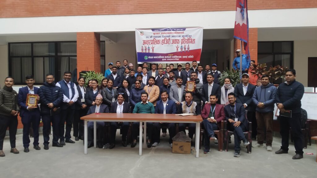 विजयी प्रतियोगि तथा सहभागी पालिकाहरूलाई बुटवल उपमहानगरपालिकाकी निमित्त प्रमुख प्रशासकीय अधिकृत तुलसा अर्यालले पुरस्कार तथा प्रमाणपत्र बितरण गरिन् । नेपाल नगरपालिका कर्मचारी एशोसिएशन इकाई समिति बुटवल उपमहानगरपालिको आयोजना भएको प्रतियोगिताको मंगलबार एक कार्यक्रमकाबीच बुटवल उपमहानगरपालिकाकी उपप्रमुख सावित्रा देवी अर्यालले उद्घाटन गरेकी हुन् ।