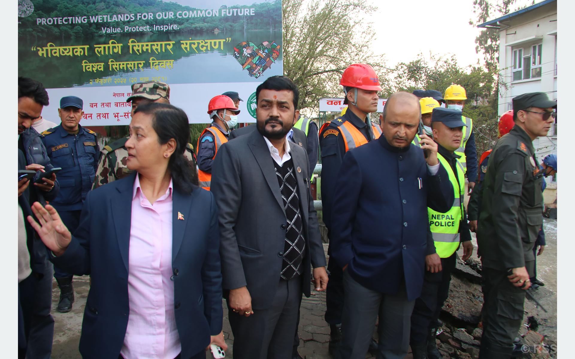सो क्षेत्रको अनुगमन तथा निरीक्षणका लागि त्यहाँ पुगेका मन्त्री यादवले विद्युत्का तारहरू जमिनमा बिछ्याउनका लागि खन्ने क्रममा बबरमहलमा रहेको खानेपानीको थोक वितरण प्रणालीको पाइप फुटेपछि पानी जमेर जलमग्न भएको बताए ।