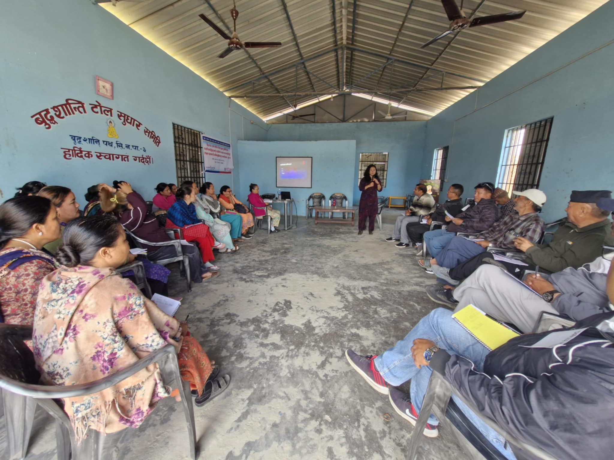 सिद्धार्थनगर नगरपालिका वडा नं ३ मा गठित टोल सुधार समितिका पदाधिकारीलाई उदघोषण कला तथा माईन्यूट लेखन सम्बन्धी अभिमूखीकरण कार्यक्रम २०८१ को समापनमा बोल्दै सिद्धार्थनगरपालिका वडा नं ३ का कार्यक्रमका कार्यबाहक अध्यक्ष गयतीरा हरिजनले यस खालका कार्यक्रमको आवश्यक्ता रहेको बताउँदै यस खालका तालिमलाई निरन्तरता दिन आग्रह गरीन् ।